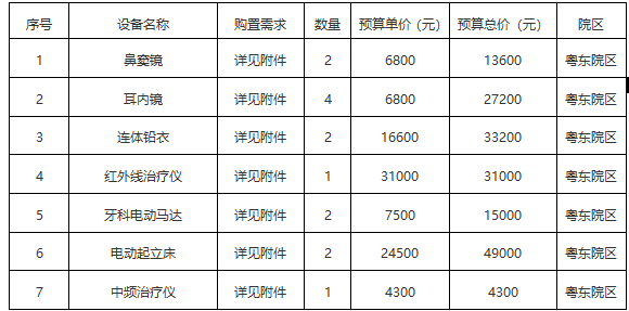 中山大学附属第三医院粤东医院拟对以下医疗设备进行议价,兹邀请符合资格条件的供应商报名。