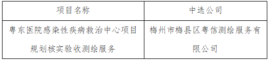 中山大学附属第三医院粤东医院感染性疾病救治中心项目规划核实验收测绘服务中介服务超市采购结果公示