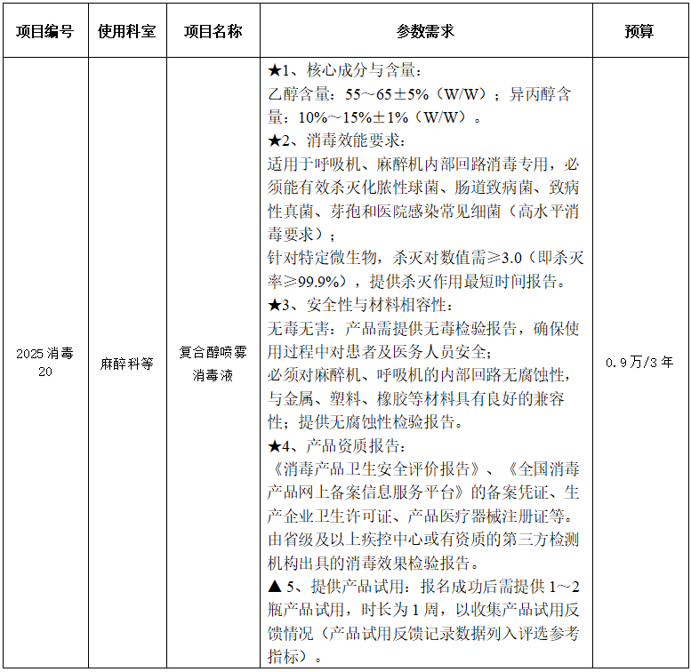 中山大学附属第三医院粤东医院,拟对以下消毒用品进行遴选,兹邀请符合资格条件的供应商报名。